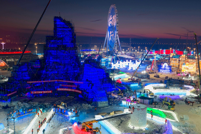 第二十七届哈尔滨冰雪大世界主塔“冰灯启梦”封顶