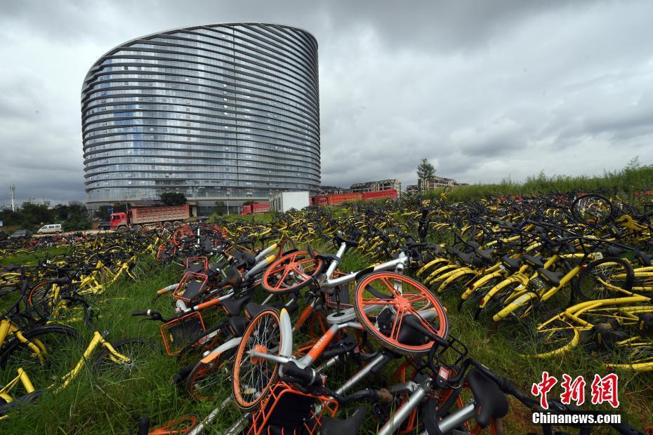 近半年来,位于昆明市盘龙区的闲置荒地里堆放了大量的共享单车