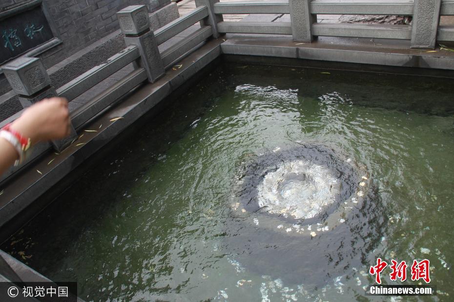 漱玉泉是济南七十二名泉之一,往来游客习惯向泉水内投币以求平安。时间长了,泉眼处遍布钱币。 图片来源:视觉中国