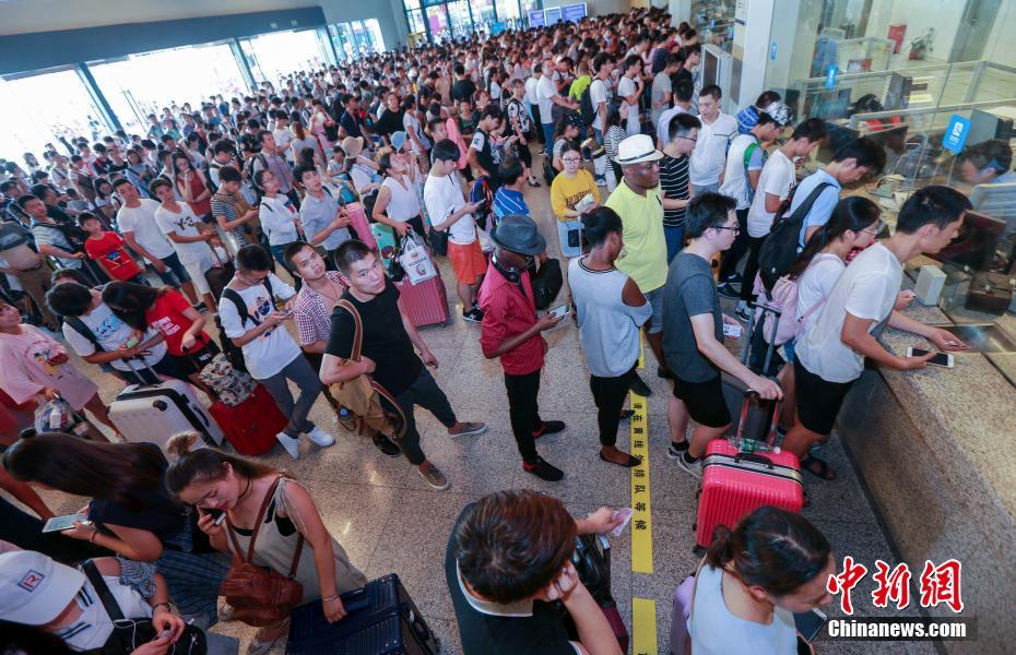 7月6日,武汉火车站大厅旅客们在办理退票。当日,因湖南部分地区近日持续强降雨,京广高铁汨罗东至长沙南站间产生水害,导致京广高铁武汉至广州间旅客列车停运。截止12时,武汉火车站共134趟列车停运。 中新社记者 赵军 摄