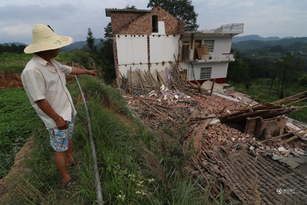 涟源市伏口镇新园村山体断裂下沉导致民房倒坍。