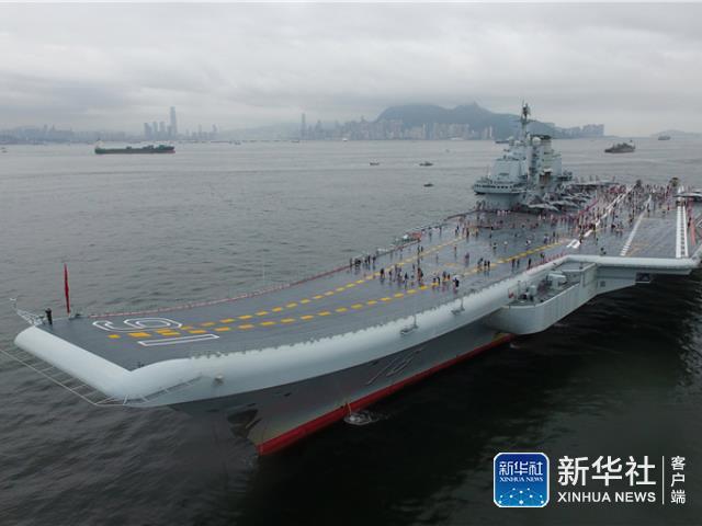 2017年7月8日,香港,为庆祝香港回归祖国20周年,中国首艘航空母舰辽宁号和导弹驱逐舰济南号、银川号、导弹护卫舰烟台号7日抵港。8日,辽宁舰向香港市民开放,首批游客登舰参观。图为首批香港市民登上辽宁舰。