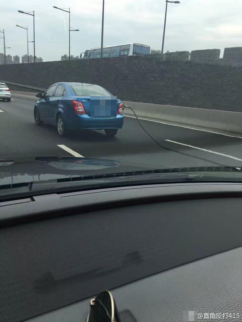 轿车车尾拖着油枪上路狂奔 网友:加