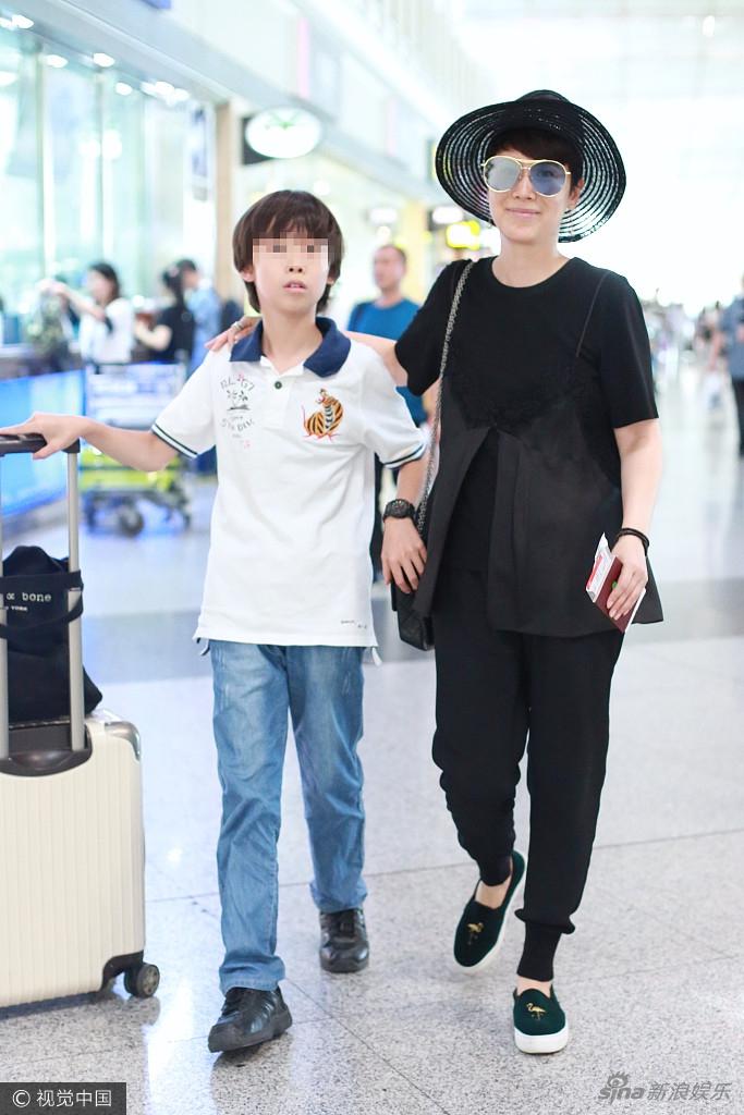 海清10岁儿子长成小帅哥侧脸清秀 见镜头略显害羞