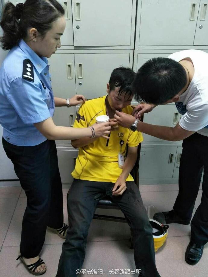 7月11日,河南洛阳一外卖小哥顶着近40度的高温送餐中暑,在派出所前晕倒,经洛阳长春路派出所警察及时救治后,小哥已转危为安。