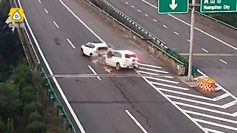 安徽一轿车高速上倒车遭追尾 瞬间被