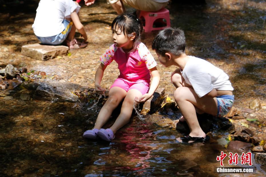 连日高温 游客杭州九溪戏水纳凉