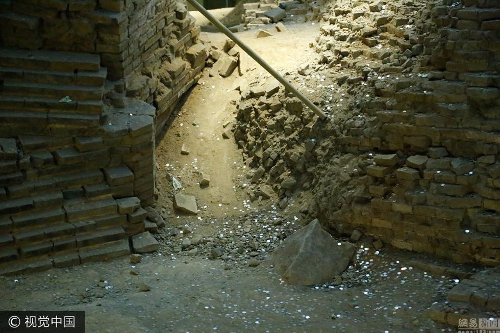 2017年7月18日,杭州,刚被清理过的遗址内很快就又堆起了硬币和纸币。近年来,由于游客扔硬币祈福的现象屡禁不止,浙江杭州雷峰塔遗址已被硬币覆盖成“钱山”,每月都需管理部门的清理才能维持原貌。王远(浙江分社)/中新社/视觉中国