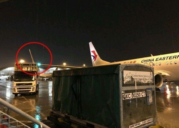 国泰航空餐车撞上东航客机 机翼损毁