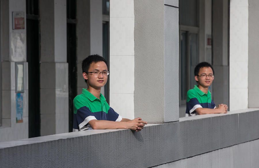 浙江省绍兴市柯桥中学今年的毕业生中,有一对双胞胎兄弟今年高考都取得很好的成绩。哥哥倪庆明(右)考上上海交大,弟弟倪坤明(左)考上北大。而他们的父母都是江西籍外来务工人员。摄影:都市快报 陈中秋