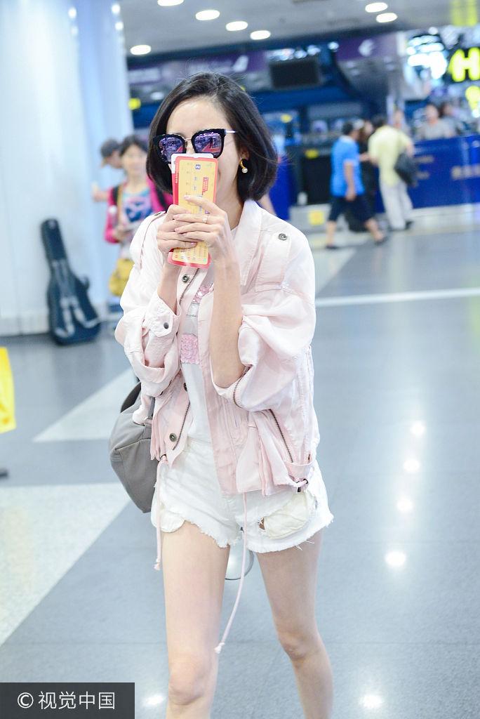 2017年7月19日,佟丽娅现身首都机场。剪了短发的佟丽娅身穿粉色外套搭配白色热裤露出细长美腿,造型甜美靓丽,吸睛十足。