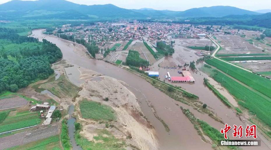 7月20日,受19日黑龙江局地暴雨影响,距离省会哈尔滨近200公里的尚志市部分村庄和林场受灾,当地道路、电力和通讯中断,现场救援工作仍在进行中,当地民众被转移安置,具体受灾情况仍在统计中。图为航拍黑龙江尚志村庄灾情。文/中新社记者 王舒 解培华 图/何嘉兴