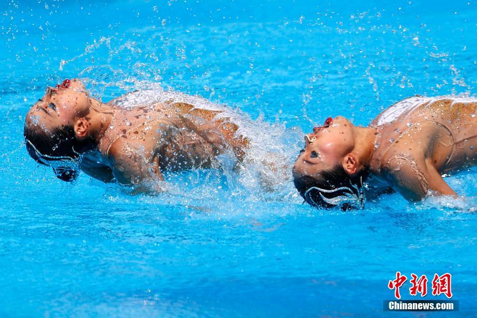 当地时间7月20日,2017国际泳联世锦赛花游双人自由自选决赛在布达佩斯举行,中国组合蒋文文、蒋婷婷以95.3000分夺得亚军。中新社记者 富田 摄
