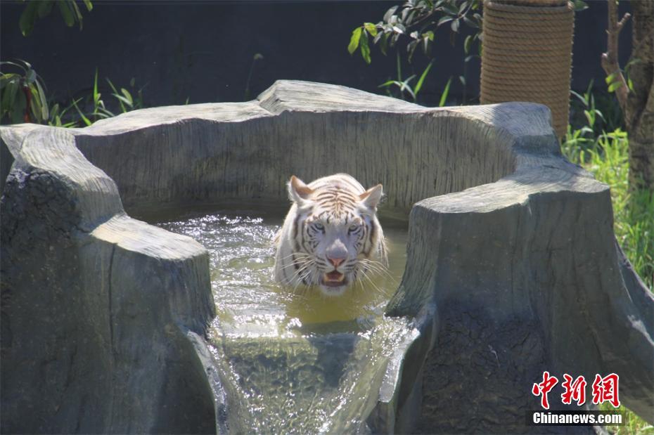 持续的高温天炙烤着江苏多地,民众在经受高温考验的同时,动物园的小动物也在以各种方式防暑降温。7月20日,常州淹城野生动物世界里的小动物萌态过夏,吸引了众多游人的目光。据了解,常州淹城野生动物园动物消暑食物主要是西瓜,每天园区所有动物食用西瓜总量约300斤,袋鼠、长颈鹿则是吃煮熟的绿豆。同时为防止动物中暑,藿香正气水、十滴水、夏方菊颗粒也成了动物们的常备药物。园区主要动物场馆如熊猫馆、长颈鹿馆、小熊猫馆、羊驼馆等场馆,每天会准备30多块冰块,辅助日常降温,给动物们创造清凉夏日。唐娟 摄