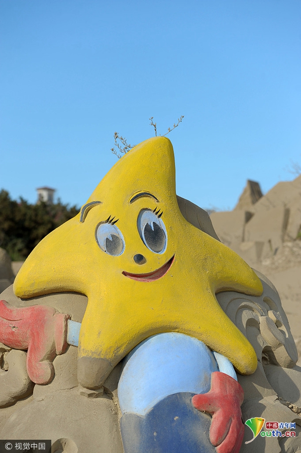 2017年7月22日,浙江省舟山市朱家尖南沙景区,沙雕作品上长满了草,让游客大呼稀奇有趣。沙雕作品由含有盐分的海沙堆砌雕刻而成,为了加固,沙雕表面还喷洒了一层特定胶水,这样的质地竟然也有植物生长,大自然无奇不有。