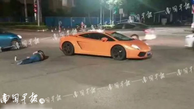 据南国早报报道,2017年7月22日晚10点半左右,在广西南宁中柬路与合作路交汇的十字路口发生一起交通事故。一辆兰博基尼跑车将一名代驾员撞翻在地。