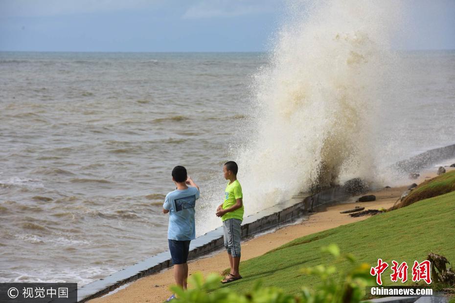 2017年7月23日,海南琼海,博鳌海滨乌云翻滚大雨阵阵巨浪滔天。2017年7月21日、22日在南海生成的两个热带低压,22日下午相继加强为今年第7号、第8号台风,并将在23日先后登陆广东和海南。今年第7、第8号台风22日在南海生成,将分别登陆广东和海南,并带来大风暴雨。目前海南广东两省正严阵以待做好应急响应。图片来源:视觉中国
