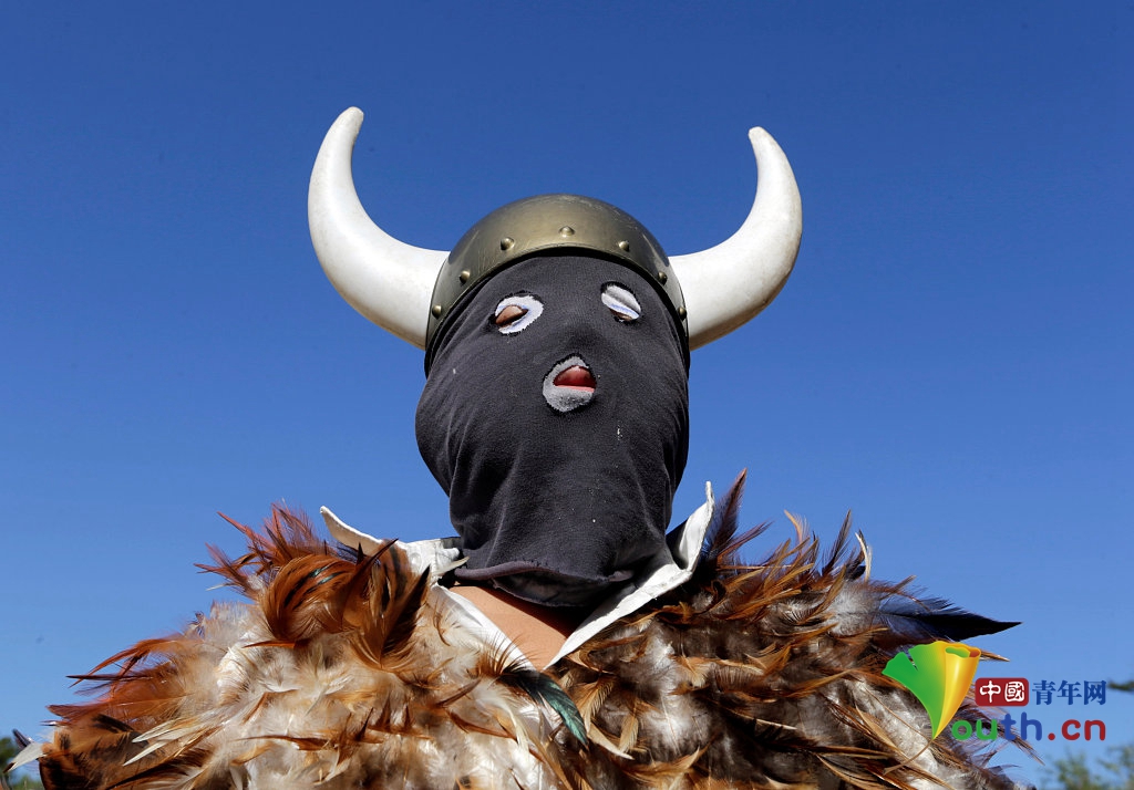 当地时间2017年7月24日,巴拉圭Emboscada,当地居民穿戴着独特的面具和羽毛向Guaikuru部落致敬。作为庆祝圣弗朗西斯·索兰纳斯年度节日的一部分。