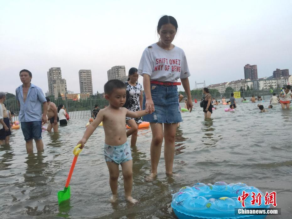 浙江宁波日湖黄金沙滩迎来戏水高峰