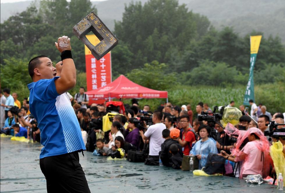 少林寺“无遮大会”上演石锁飞刀二指禅