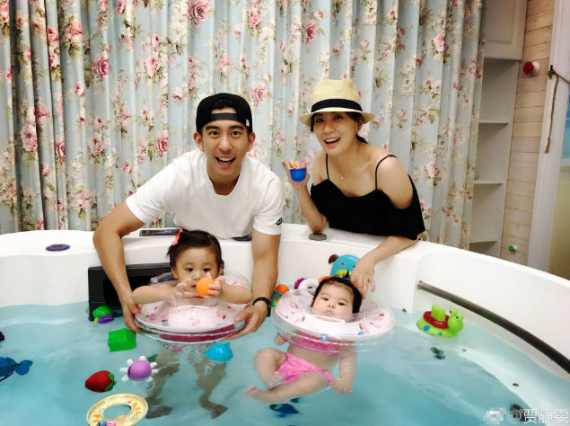 7月30日,贾静雯在微博上晒出带着咘咘Bo妞两姐妹游泳照,姐妹俩同框太可爱,都拥有同款大眼睛。