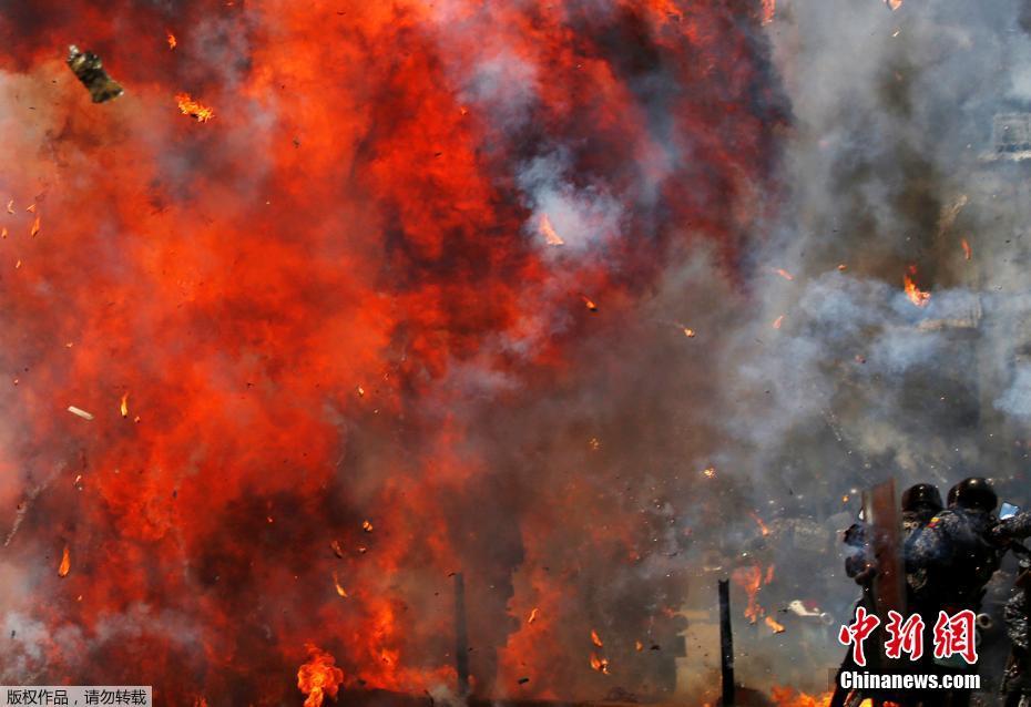 当地时间7月30日,委内瑞拉首都加拉加斯爆发冲突,委内瑞拉定于30日举行制宪大会选举,该国局势日趋紧张。委总统马杜罗27日颁布总统令,禁止7月28日至8月1日期间举行集会、游行活动。但反对派28日呼吁其支持者无视禁令,并于当天启动为期3天的全国抗议活动。图为加拉加斯街头因爆发冲突而升起熊熊火焰。