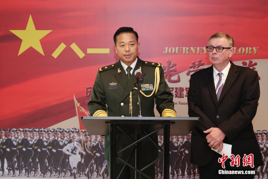 当地时间7月31日,中国常驻联合国代表团军参团在联合国纽约总部举办庆祝中国人民解放军建军90周年图片展。图为军参团团长黄雪平少将致辞。 中新社记者 廖攀 摄