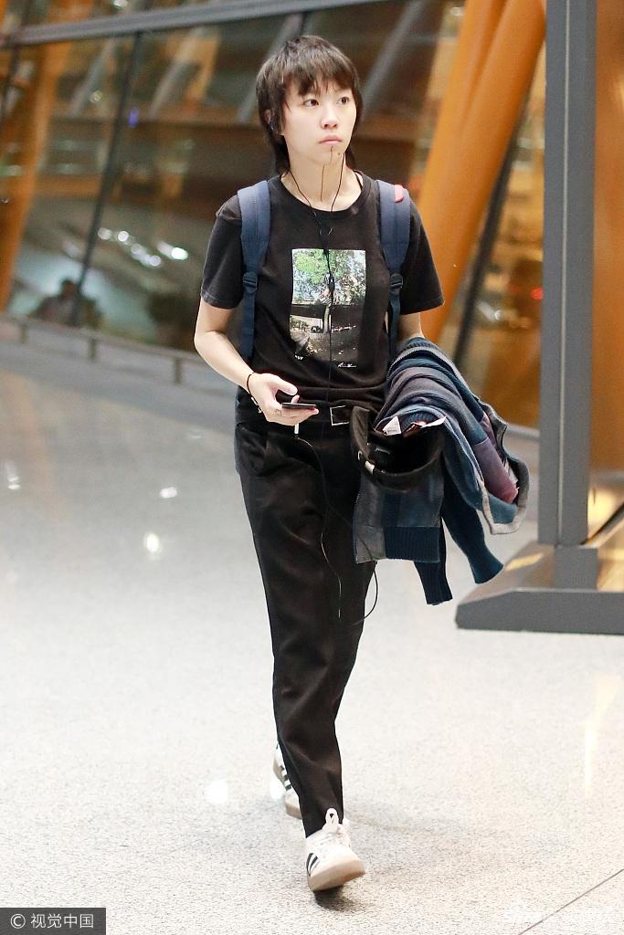 窦靖童拎大包搭外套独自出行 黑衣酷
