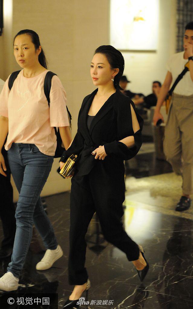 九球天后潘晓婷梳背头一身黑现身 脚踩高跟鞋气场强