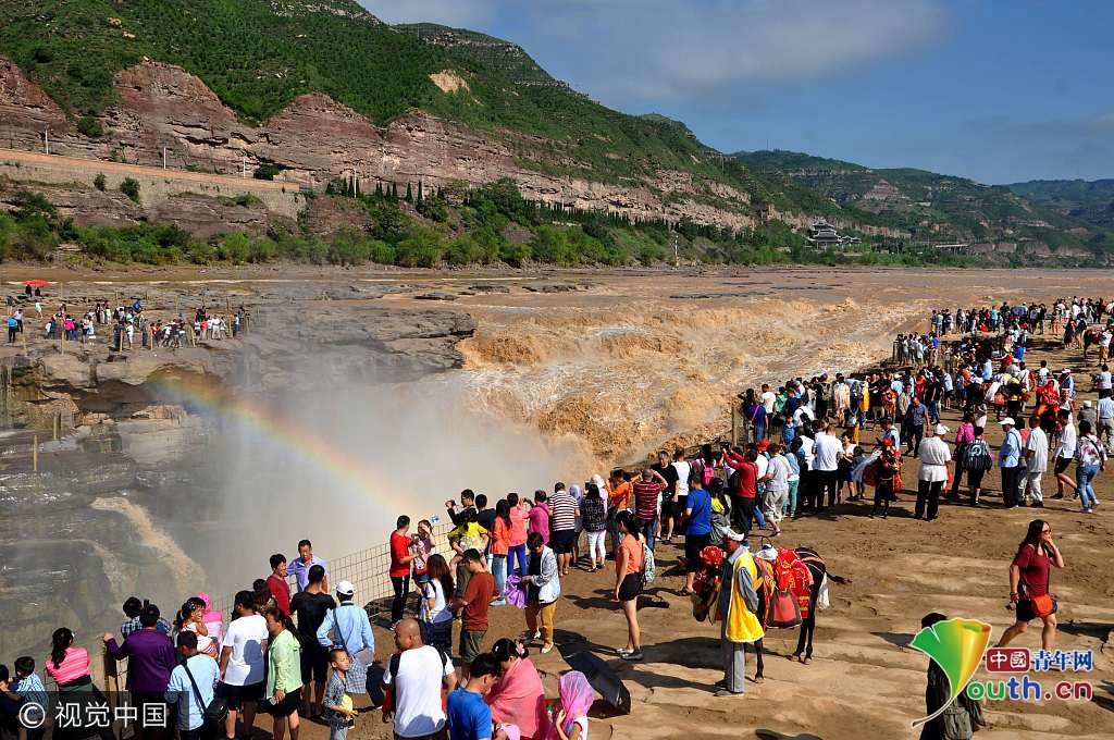 2017年8月8日,众多游客在山西吉县黄河壶口瀑布景区游览。