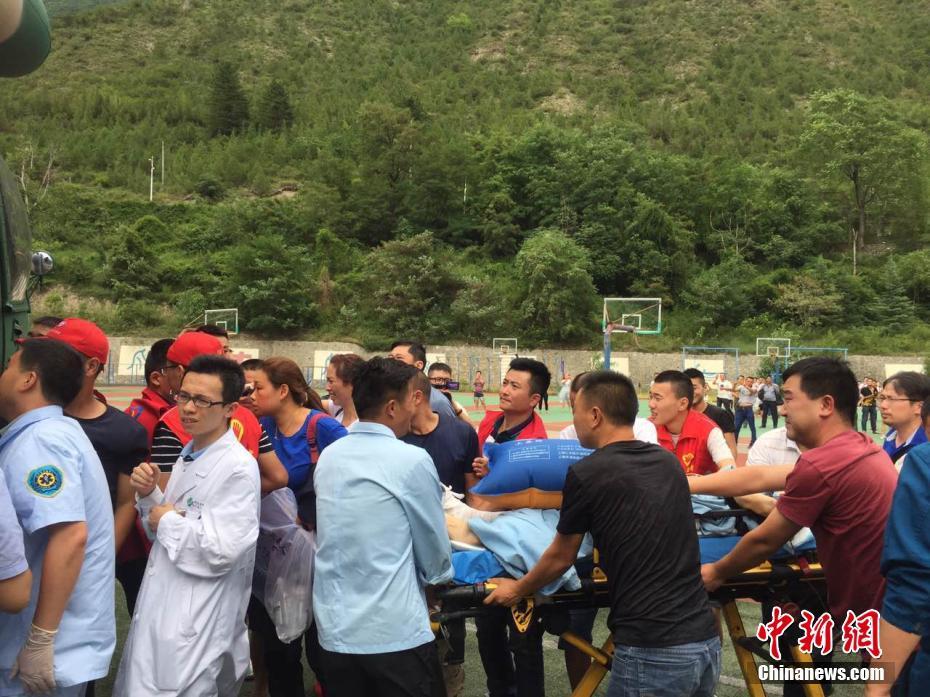 8月9日,九寨沟县人民医院的重伤员被运上直升机,即将前往四川省人民医院接受治疗。 图片来源:四川省人民医院