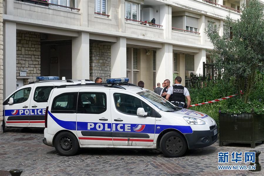 8月9日,在法国勒瓦卢瓦-佩雷,警察在事发现场附近警戒。法国巴黎近郊的勒瓦卢瓦-佩雷市市政府附近9日发生一起车辆冲撞军人事件,造成6名军人受伤,其中两人伤势严重。 新华社记者陈益宸摄