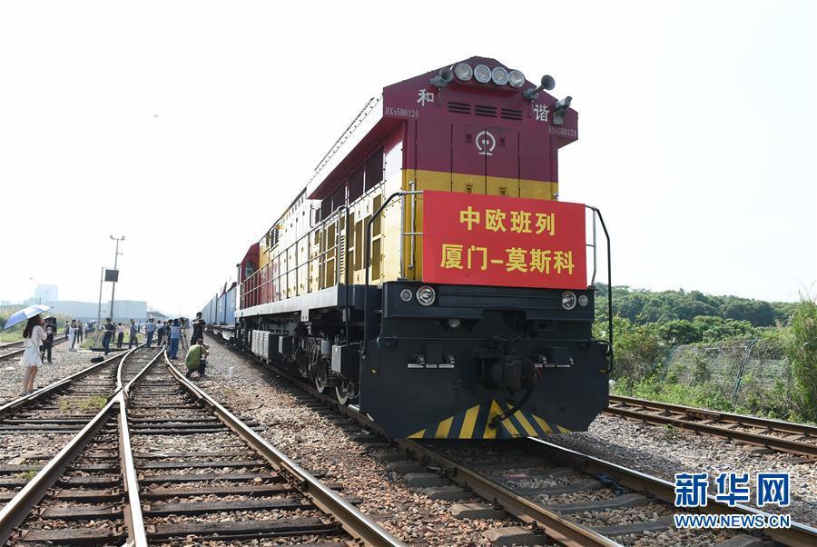 中欧(厦门—莫斯科)直达货运班列从厦门自贸区海沧货场开出(4月21日摄)。