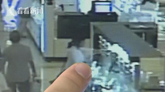 从监控画面我们可以看到,当时一名手拎包包,身穿白色衣服的女子在柜台前晃了一会儿,随后把货架上的耳环塞进自己的包里。