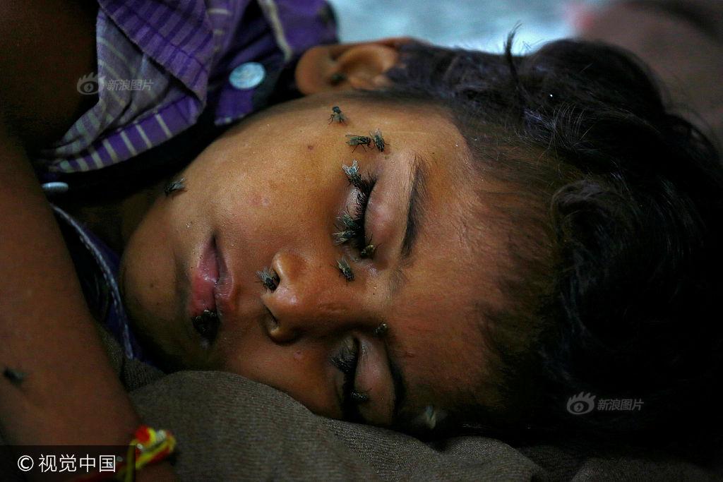 8月14日讯,印度北方邦戈勒克布尔市最大的公立医院BRD医院(Baba Raghav Das)不到一周时间,有大约70名儿童死亡。随后媒体爆出,该医院因欠款被供应商中断氧气瓶供应,许多病重儿童只能用人工手动呼吸袋。当地时间2017年8月13日,印度勒克瑙,一名入住BRD医院的儿童在地板上睡觉。