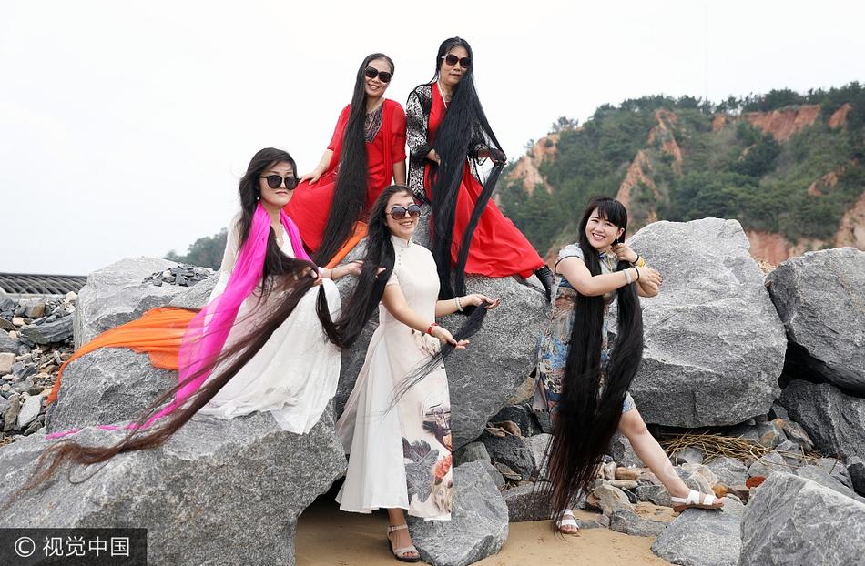 5名长发女齐聚海边 头发总长接近5层