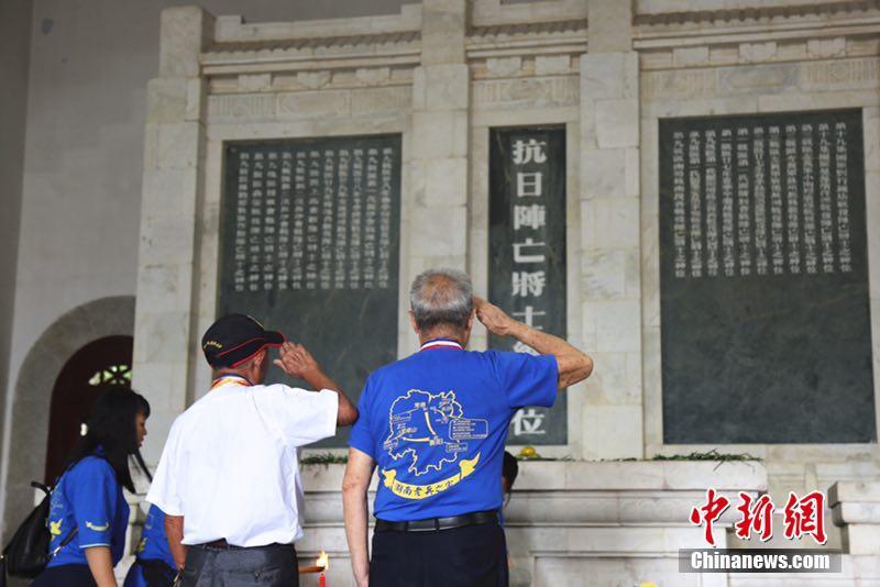 8月15日是日本战败72周年纪念日,已90岁高龄的抗战老兵曹奇杰和李宽当日在社会热心人士的帮助下,来到位于湖南省衡阳市的南岳忠烈祠祭拜,缅怀抗战英烈。曹奇杰1945年被黄埔军校录取,参加过抗日战争,1949年率部投诚,回乡务农;李宽1943年11月随部队参加常德会战,后部队改编入94军121师363团,参加过湘西会战,1945年参加芷江受降仪式。南岳忠烈祠是中国大陆唯一的纪念抗日阵亡将士的大型烈士陵园,2014年被列为首批国家级抗战纪念设施、遗址名录之一。文丽贵 摄