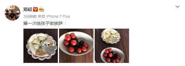 8月20日下午,邓超在微博晒出三张照片,称自己第一次给孩子做披萨。