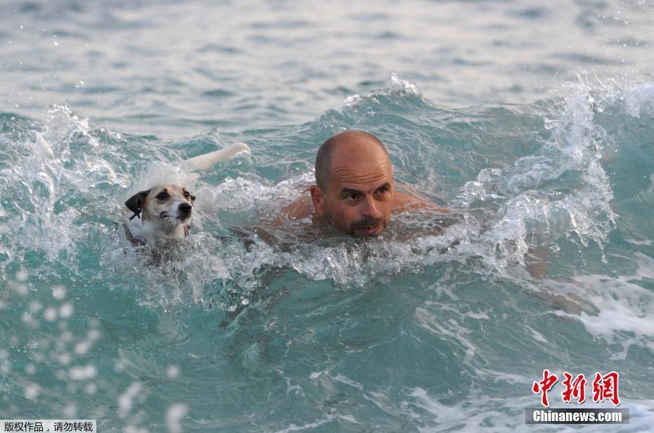 当地时间2017年8月20日,克罗地亚茨里克韦尼察,狗狗和主人们一起参加了“2017狗狗”沙滩挑战赛。