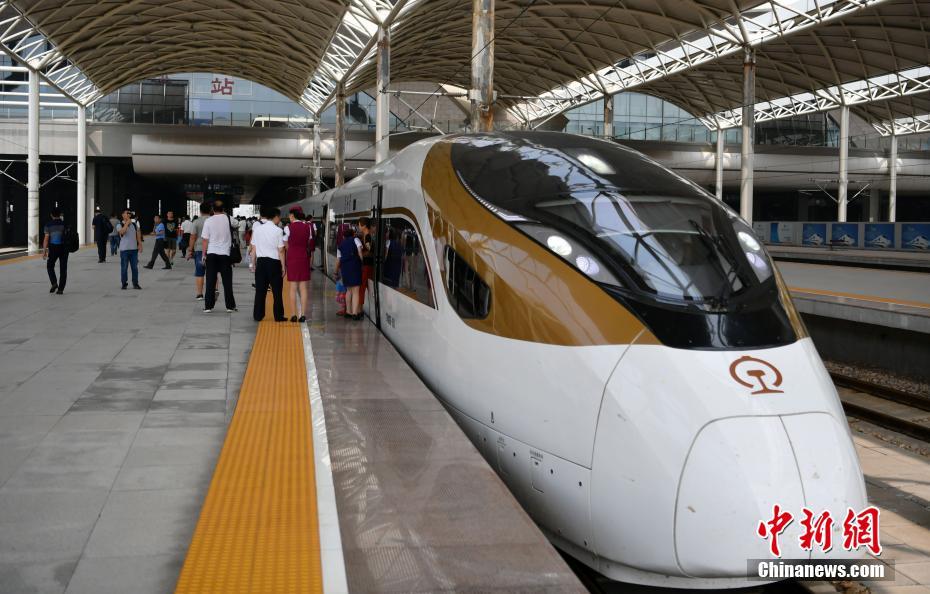8月21日,北京西至石家庄的“复兴号”G9061列车缓缓驶入石家庄火车站。据了解,中国铁路部门当日起扩大“复兴号”动车组列车开行范围,在京津冀地区开行通达北京南、武清、天津、北京西、涿州东、高碑店东、高邑西、保定东、石家庄、邢台东等10个车站22.5对的动车组列车。与“和谐号”相比,“复兴号”动车组列车设计行驶速度更快,使用寿命更长,达30年;该车身宽度、高度、车厢座位距离上都有所增加,旅客会感觉更加舒适。车厢座位号也变成了电子灯光显示,便于旅客一上车更直观地看到。 中新社记者 翟羽佳 摄