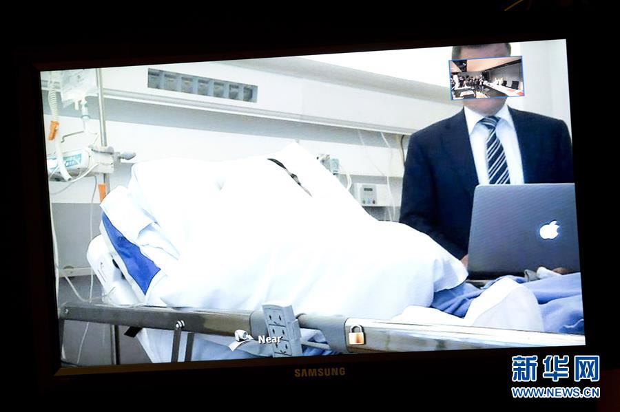 8月22日,在芬兰图尔库,持刀行凶案嫌疑人麦卡赫通过视频远程出庭。视频画面中麦卡赫躺在病床上,用枕头遮挡面部。
