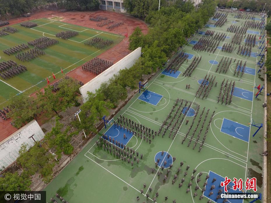 航拍郑州大学万人军训现场