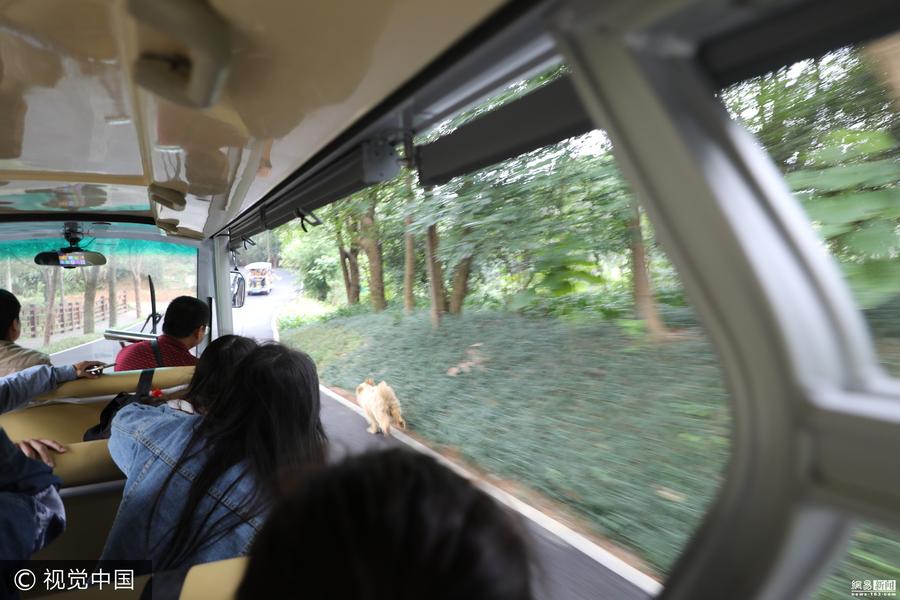 2017年9月1日,湖南常德市一景区内,一条小狗狂奔近1000米追停光观车寻找主人,游人称其精彩画面如同“生死时速”。