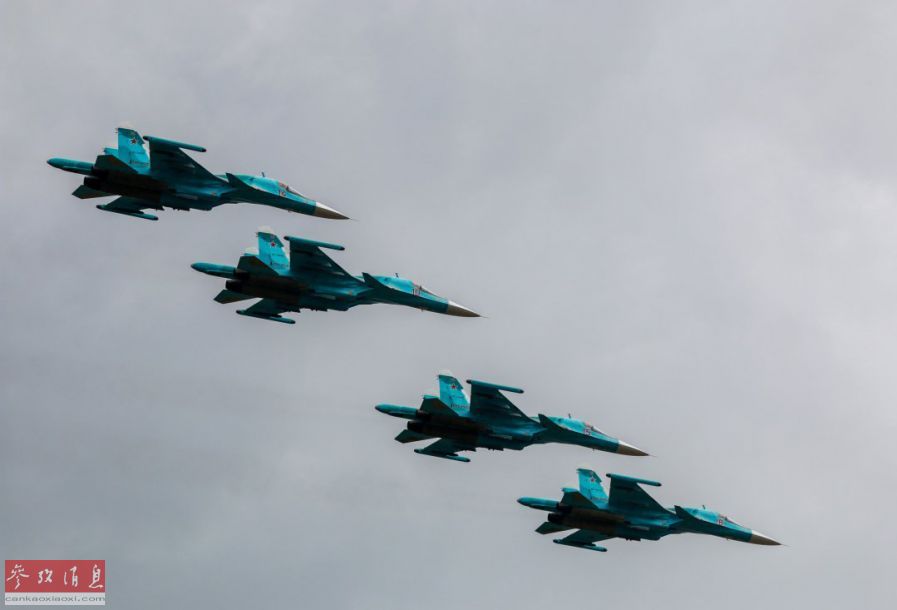 近日,俄空天军在南部军区指挥机关罗斯托夫举行仪式,庆祝空天军第4集团军成立75周年的庆典。图为俄空天军的苏-34战斗轰炸机以四机编队飞过庆典现场。