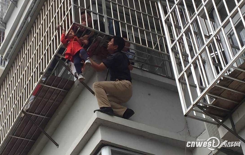 9月8日,石泉县中池镇裕民村,一家长外出将3岁女童留置家中,孰料孩子从阳台防护网上跌落,头被“卡”在防护网间身体悬空,有人见此遂报警。