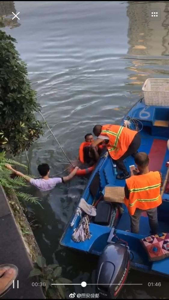 9月10日18时许,正在休班的成都特警肖强(图中黑衣男)和妻子散步路过成都市锦江区东门大桥时,突然听到河边有人大声呼喊,出于警察本能的反应朝着呼喊声方向奔去,发现竟是一女子跳河轻生!