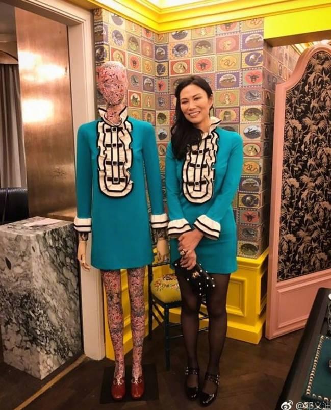 邓文迪不仅笑容灿烂满面春风,还问网友模特和她谁穿得更好。