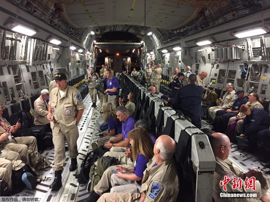 图为9月10日,美国空军从奥兰多出动军机,运送医生前往支援灾区。