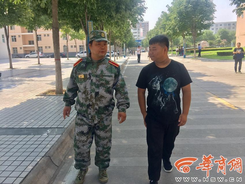 这个开学季,杨凌职业技术学院(简称杨凌职院)校园里有一对特殊的父子,父亲是今年考入该校的新生,儿子已经大二,算是父亲的“学长”了。图为军训午休时间的孙新科和儿子(孙英康)一起去就餐