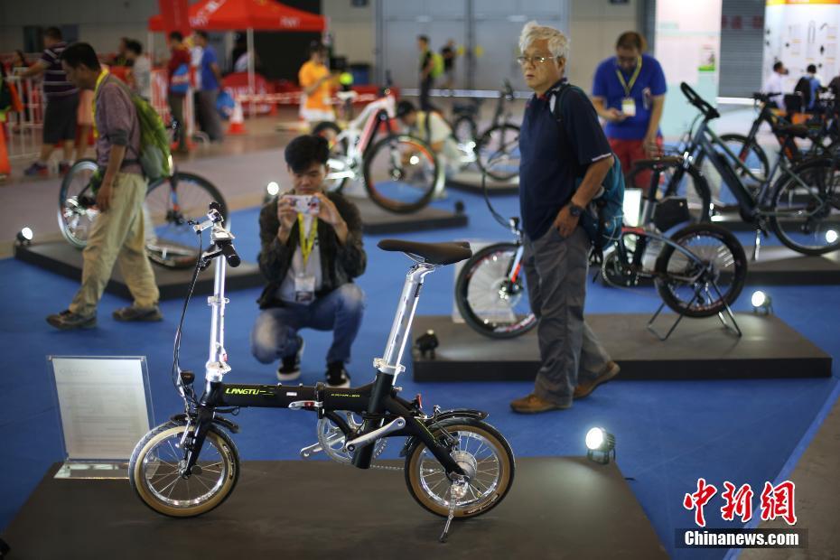 9月14日,参观者被展出的电助力自行车吸引。当日,为期3天的2017(第七届)亚洲自行车展览会在南京国际博览中心举行,来自国内外的智能自行车、运动自行车、豪华自行车、都市自行车、骑行服和零配件集中亮相。中新社记者 泱波 摄